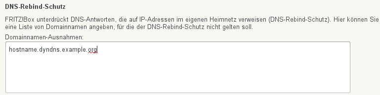 This obviously applies to IPv6 addresses, too. Luckily there is a configuration option to exclude specific domain names from this security feature, which is described in the comment below. Here’s a screenshot from the FRITZ!Box: