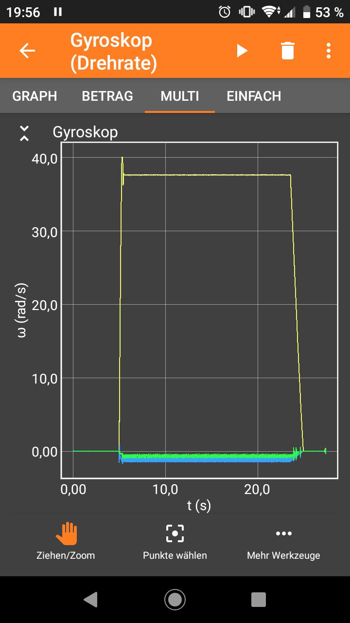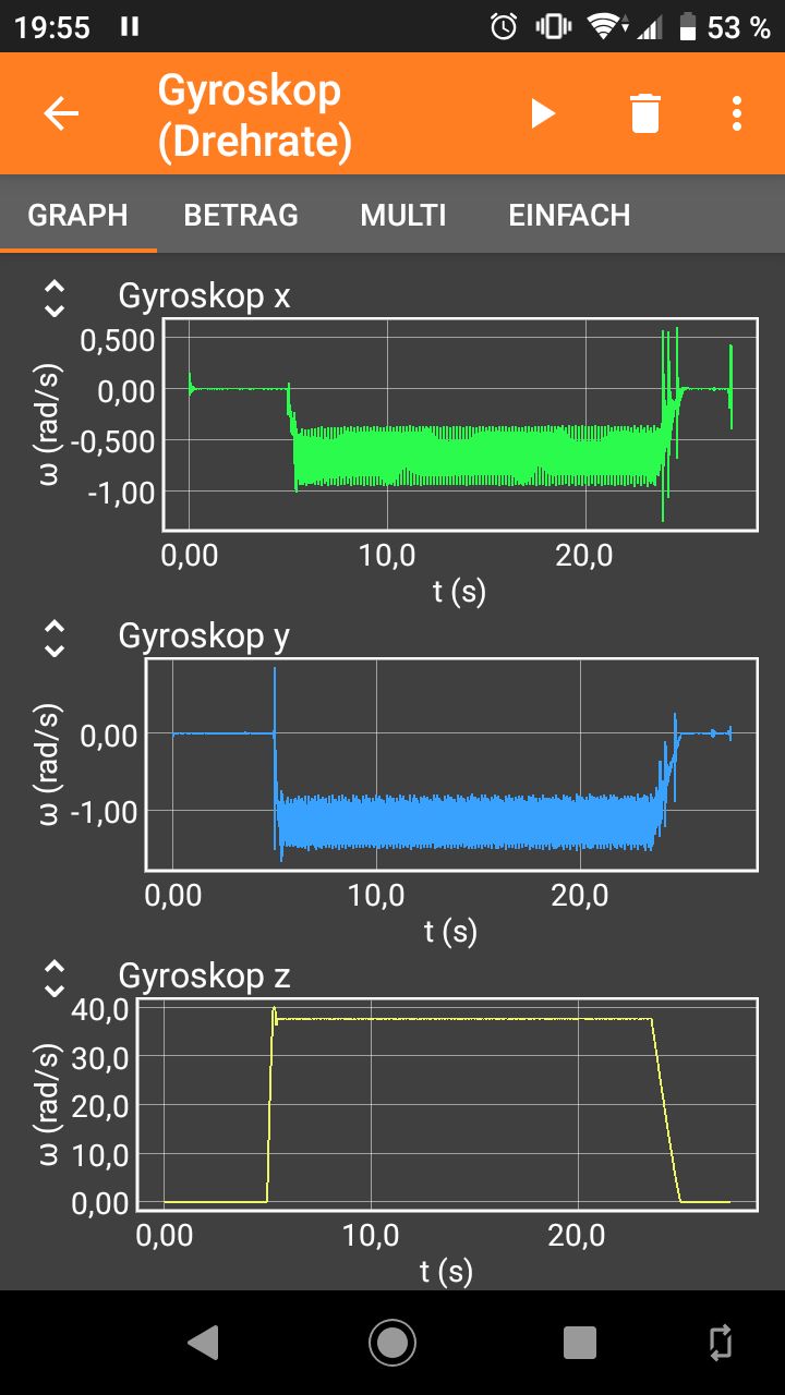 Here is another silly way, how to measure the drive rotation speed. Remember you have a smartphone? Your smartphone probably has a gyroscope - a sensor to measure acceleration and to figure out, if the smartphone is upside down.