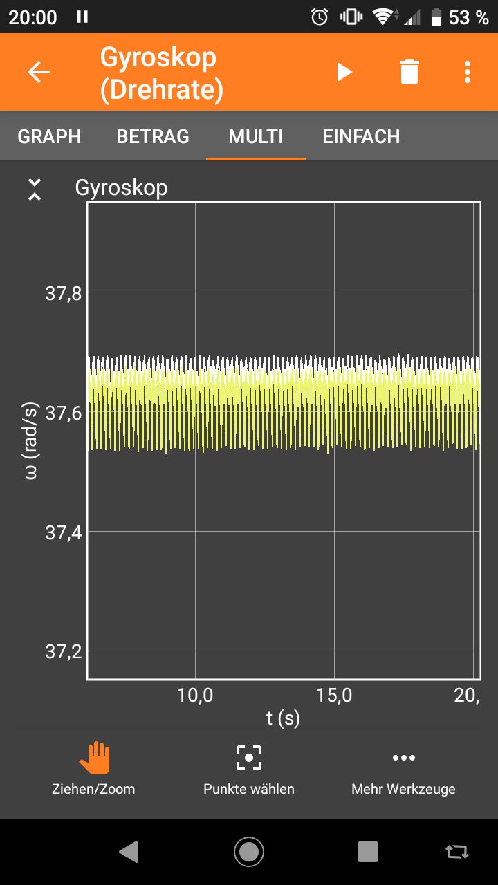 And there you can see, that the rotating rate is about 37.6 rad/s. A full rotation in “rad” is 2π, that makes this number 5.98 rotations per second or 359 rpm.
