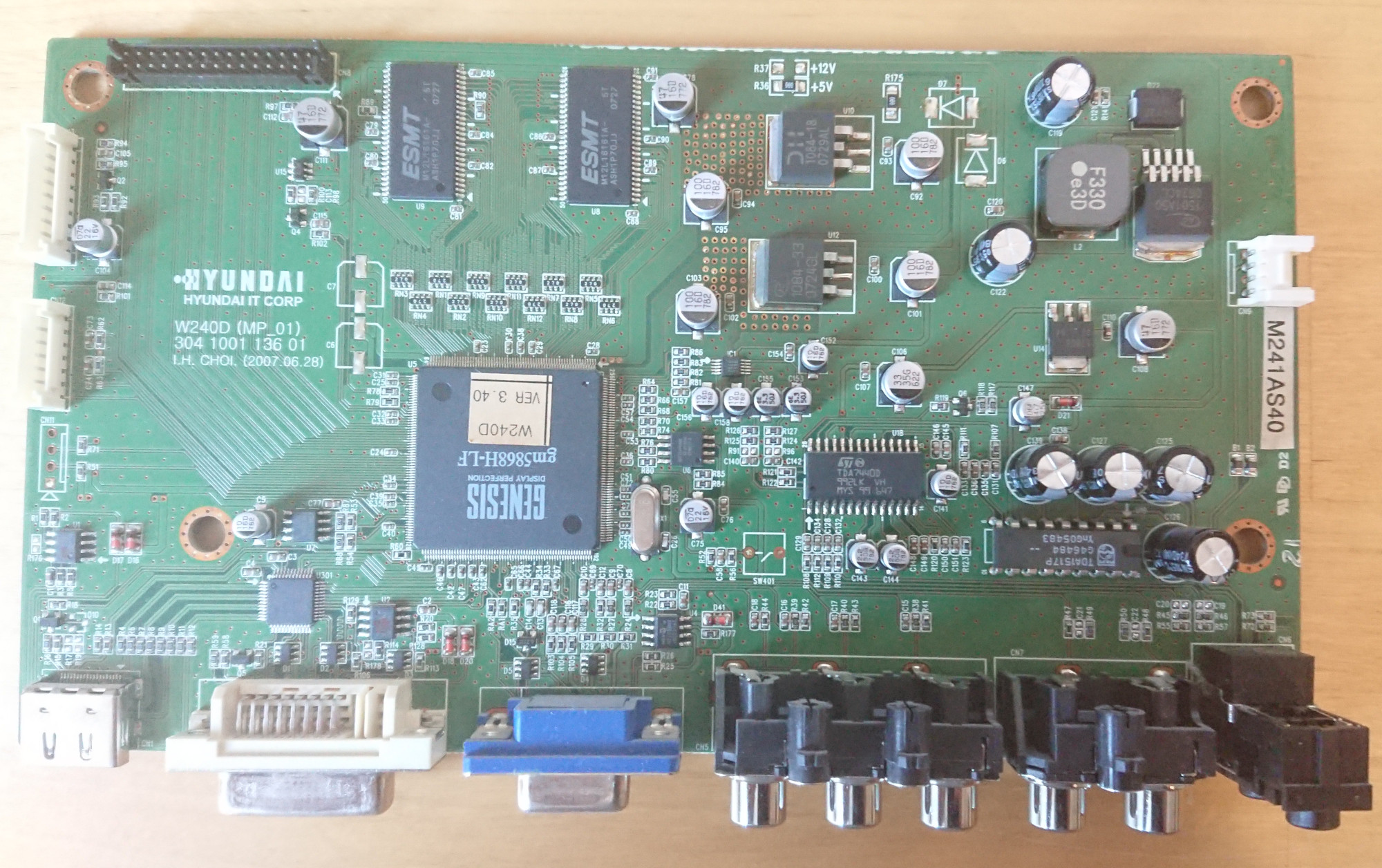 My monitor is a Hyundai W240D. It is very old, but still working. It’s a 24” full hd monitor and I bought it in January 2008. So it is now 15 years old. It had some problem with the backlight after about 1 year - but that was repaired during warranty. After that, no problems. Until a couple of weeks ago, I noticed, that it has some signal faults. It seems to be happening more frequently, after the monitor was powered on for a while (which makes it maybe a temperature problem). And it also depends on the image, that is displayed - so, e.g. switching from full screen to window or so, sometimes helped a bit, in order to “calm down” my monitor. But that’s not a solution. It become increasingly annoying. It could even be as bad, that the monitor didn’t update the picture for a while and the LCD lost it’s color… until a next full frame was successfully painted - or at least part of it.